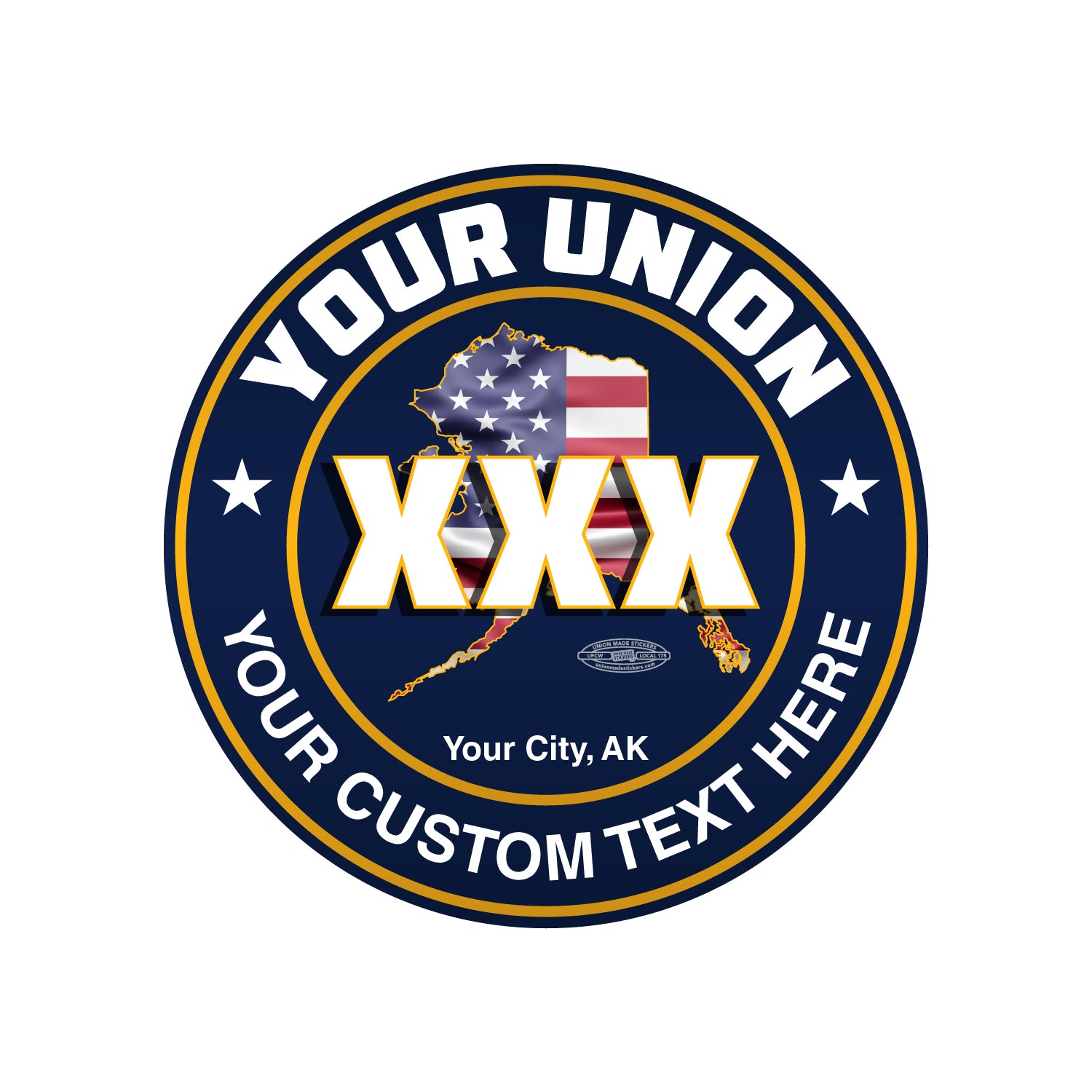 Before printing we will replace XXX with the union local number you provide as well as any generic logos with your union logo.