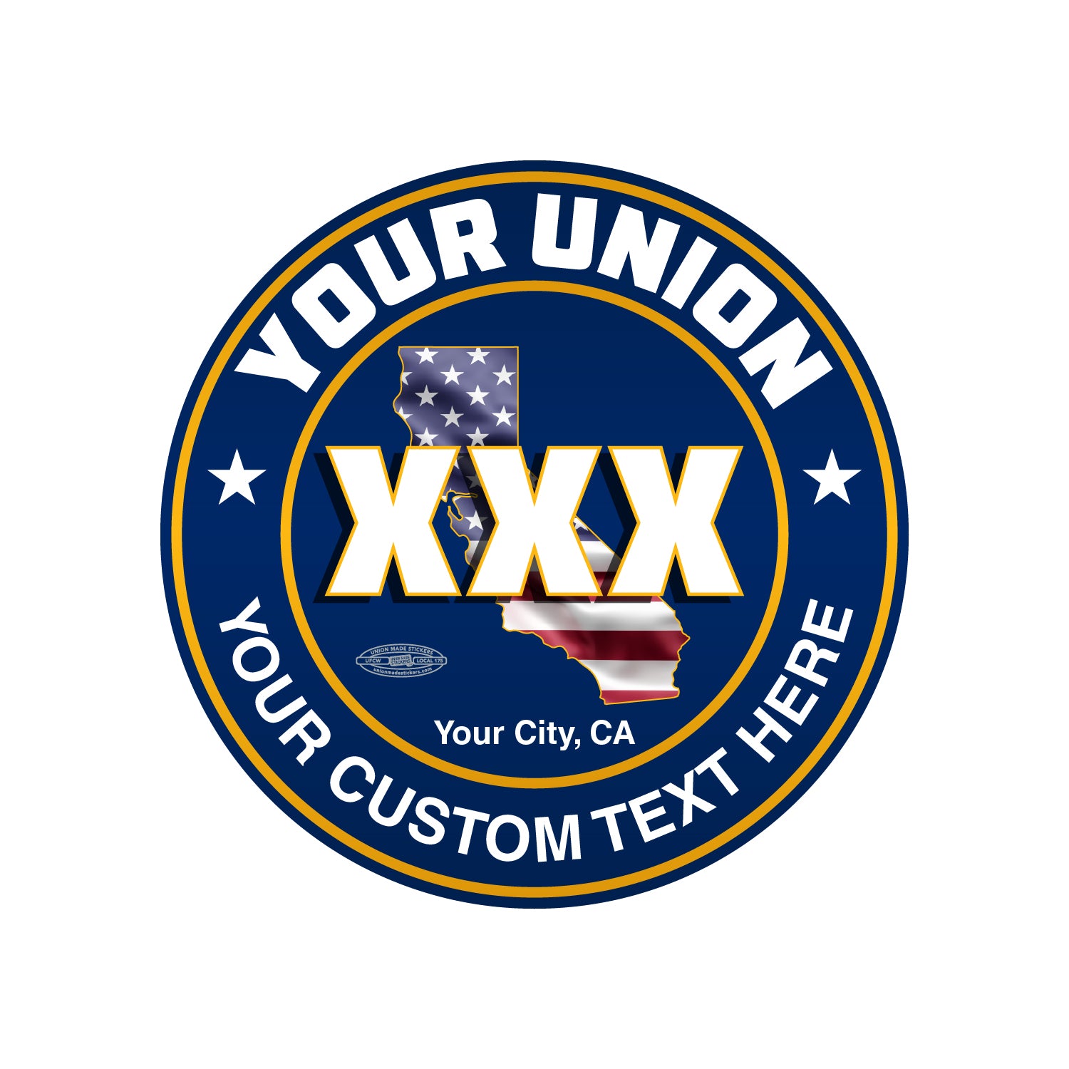 Before printing we will replace XXX with the union local number you provide as well as any generic logos with your union logo.