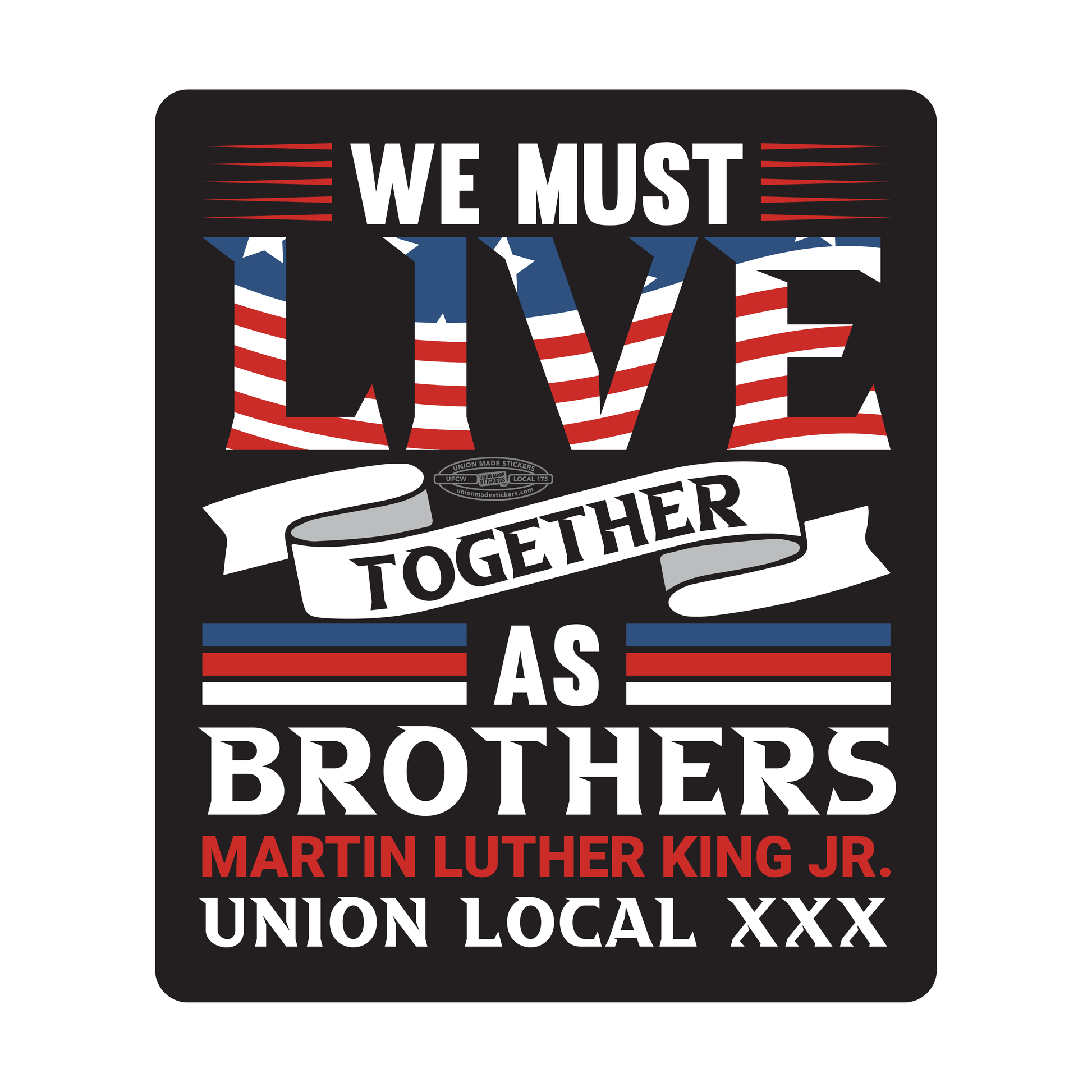 Before printing we will replace XXX with the union local number you provide as well as any generic logos with your union logo.